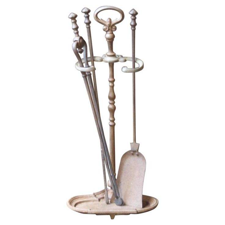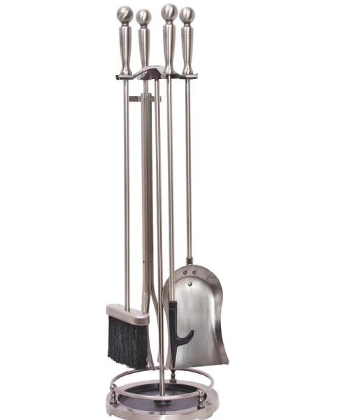 Ensemble d'outils de cheminée de bonne conception avec 4 accessoires de cheminée Pelle à brosse Pince à poker Conception verticale Support de rangement pour bûches