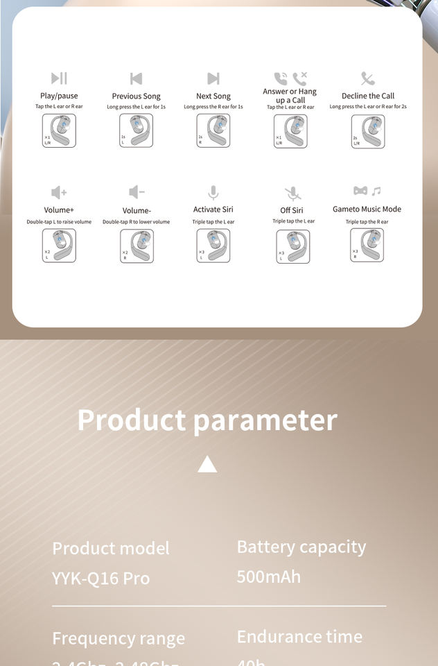 Capacité de batterie:Écouteurs: 35mAh; Cas de charge: 500mAh