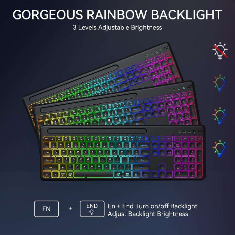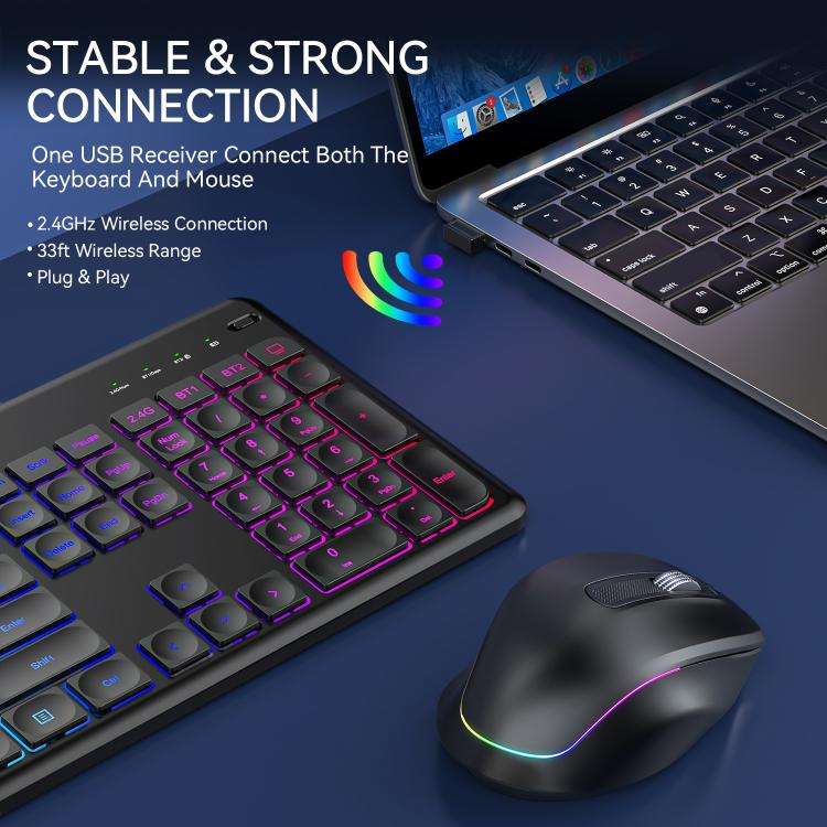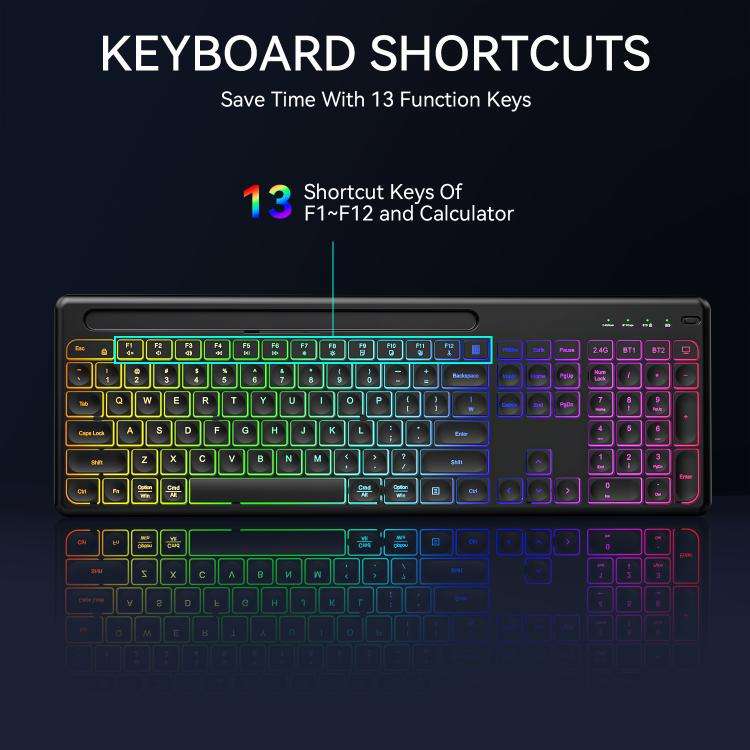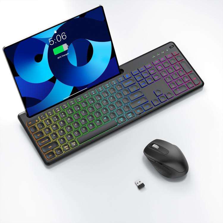 Ensemble clavier et souris sans fil 2,4 G avec fente pour téléphone/tablette, rétroéclairage RVB, rechargeable, excellent rapport qualité-prix