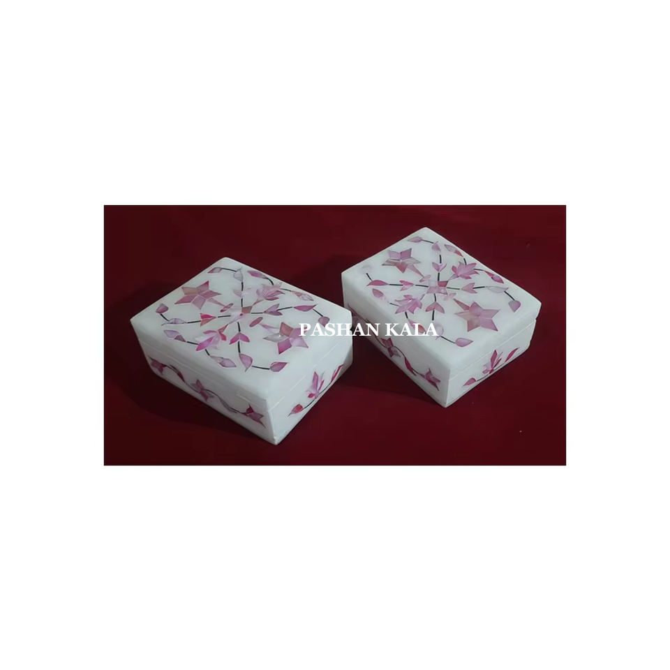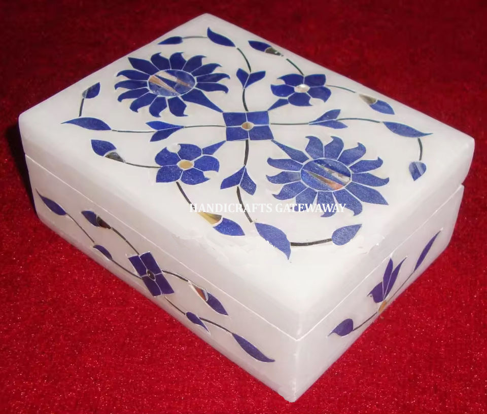 Boîte de rangement pour bijoux en marbre blanc fait main, de forme rectangulaire, avec un beau motif floral, pour un cadeau