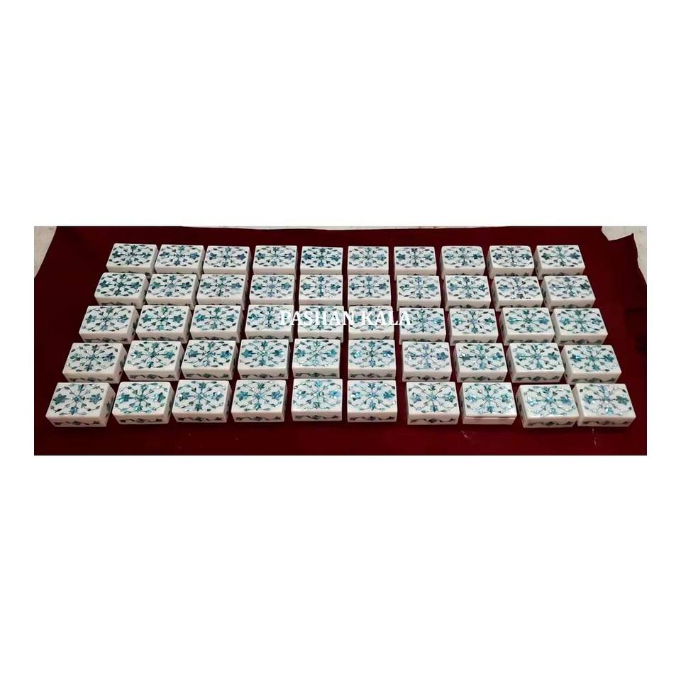 Belle apparence Rectangle vert nacre pur marbre blanc incrustation travail boîte à bijoux meilleure qualité pour Festival but de cadeaux