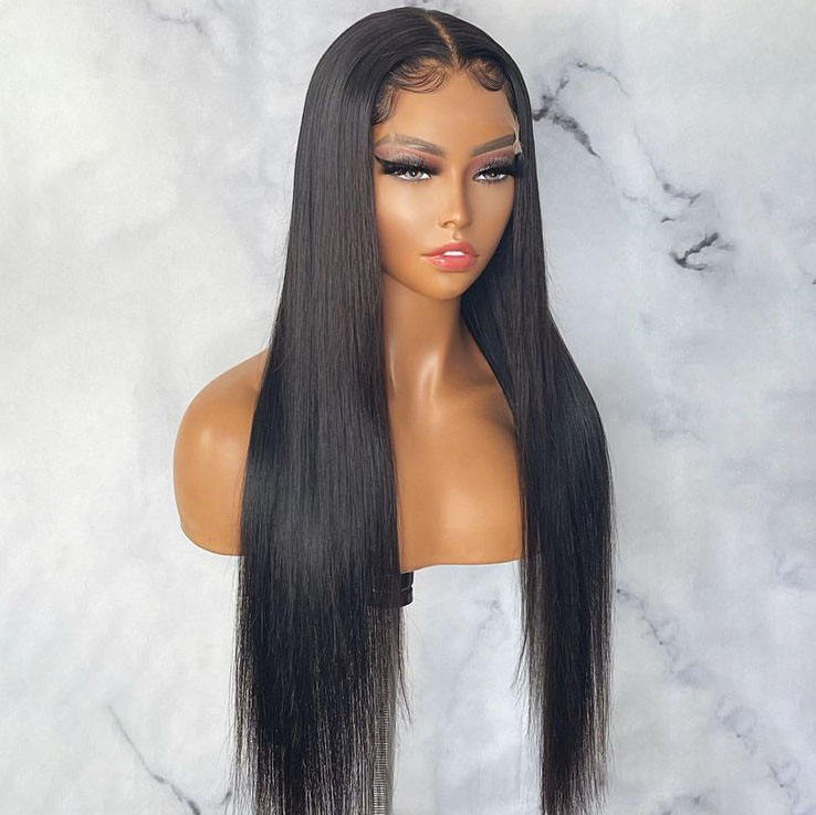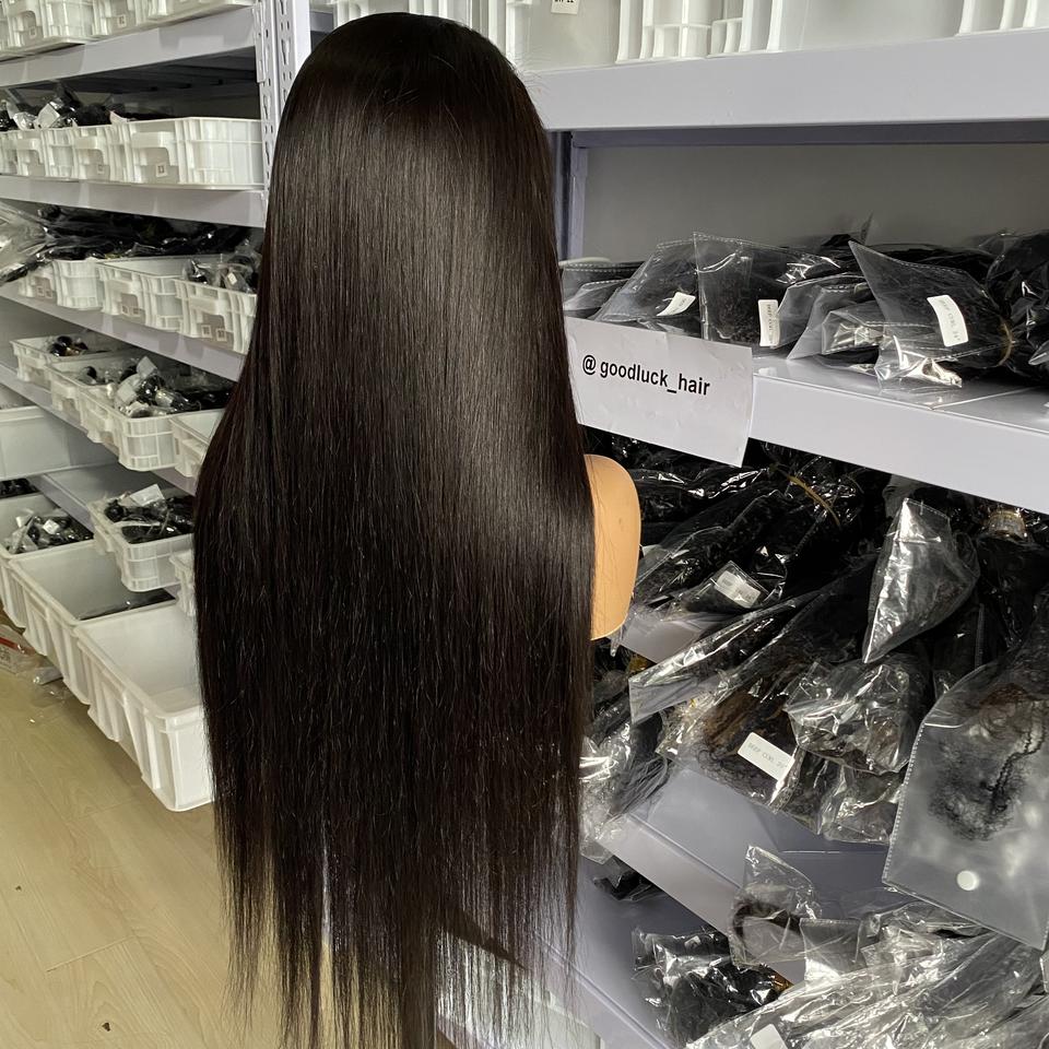 Lucky — perruque lisse de couleur naturelle de 24 pouces, cheveux vierges péruviens crus de couleur naturelle, 4*4 5*5 6*6 7x7