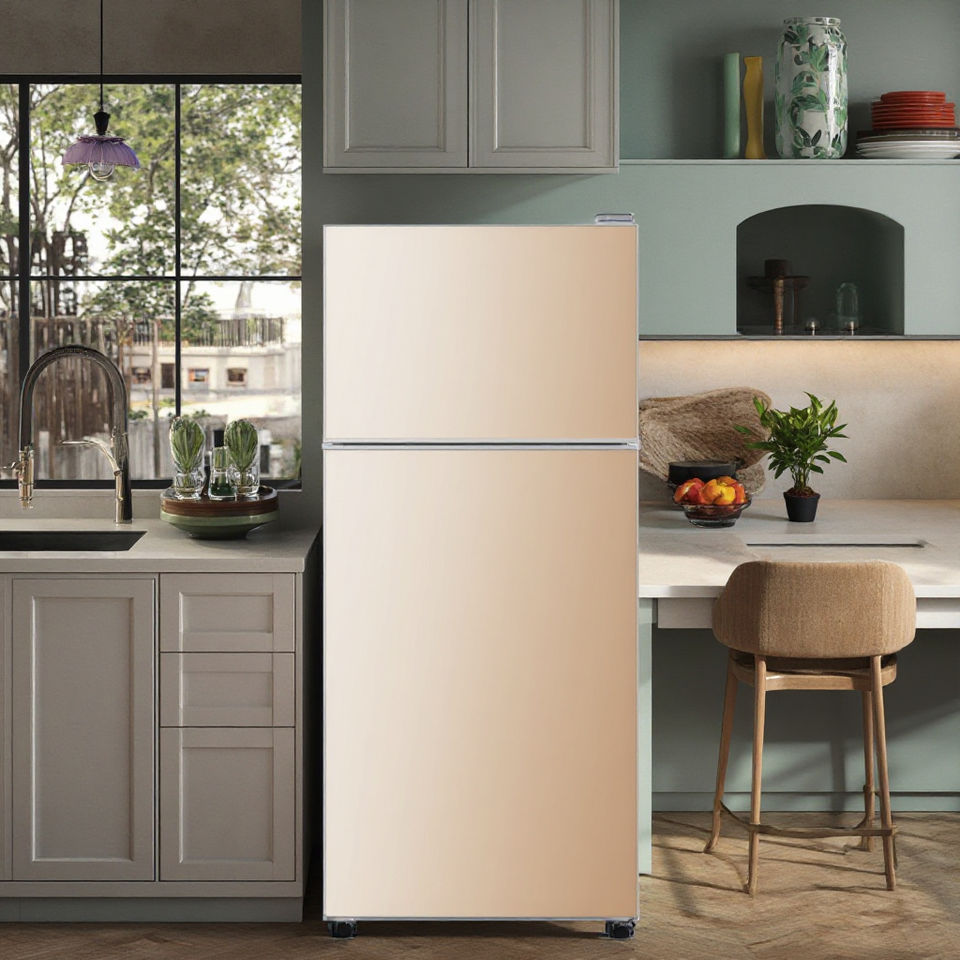 Bon prix Mini réfrigérateur électrique à congélateur en haut en plastique 102L Réfrigérateur à double porte à congélation rapide à double température
