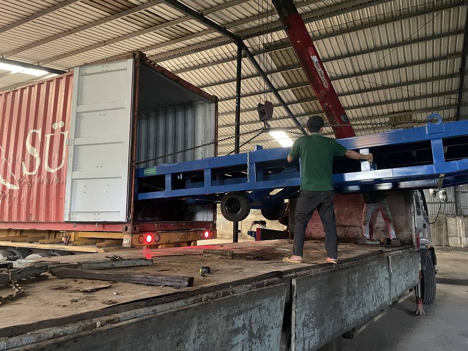 2. Fixé à la paroi du conteneur par un fil d'acier épais