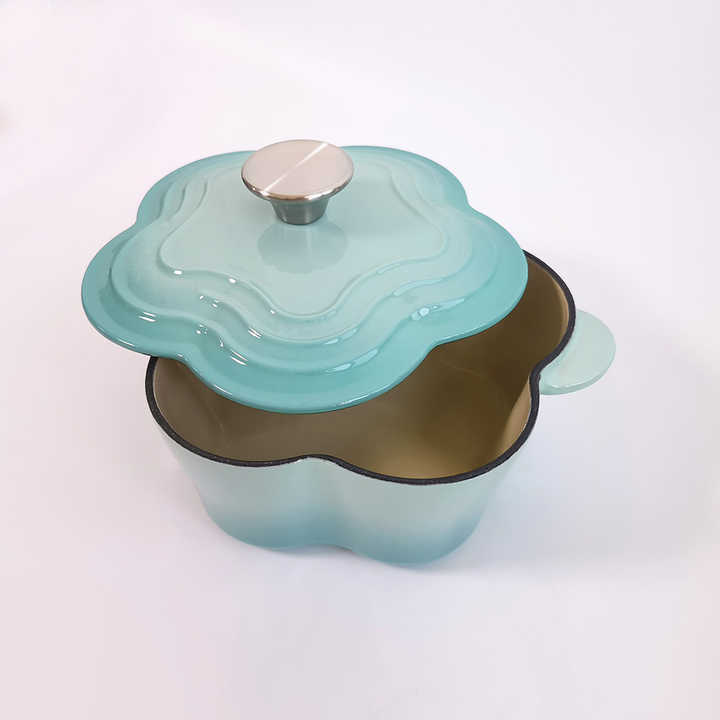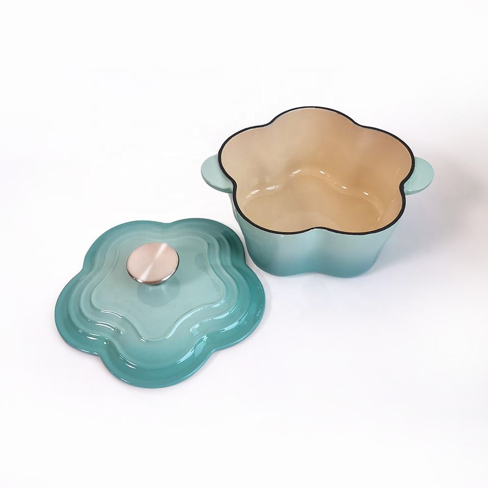 Nom du produit:Cocotte en fonte émaillée en forme de fleur, ustensile de cuisine