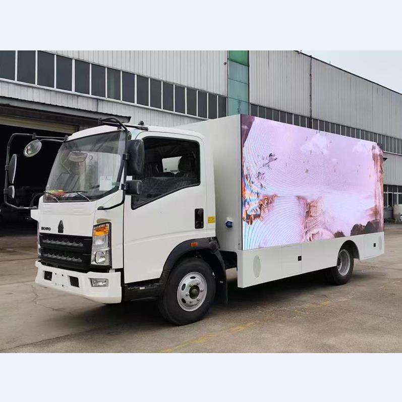 Camion de publicité extérieure HOWO 4X2 LHD RHD à bon prix avec écran à 3 côtés panneau d'affichage LED pour les spectacles routiers