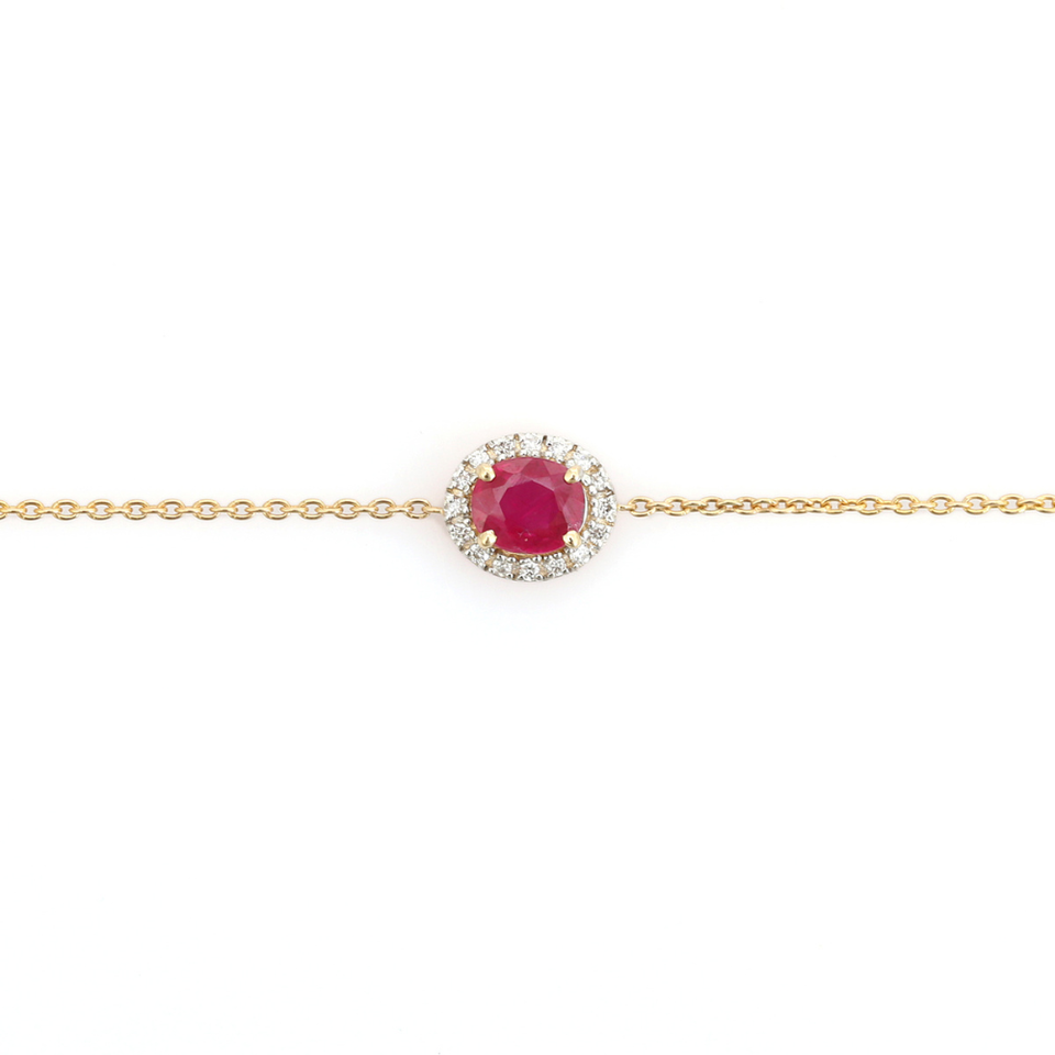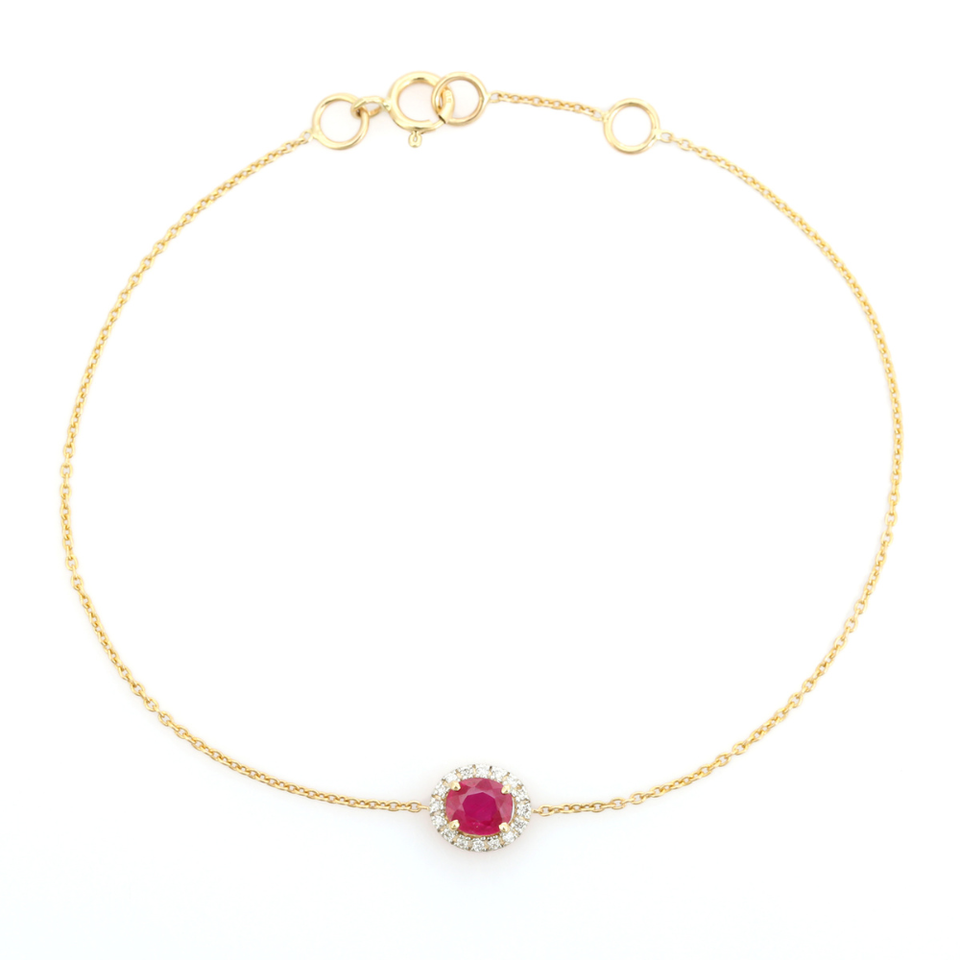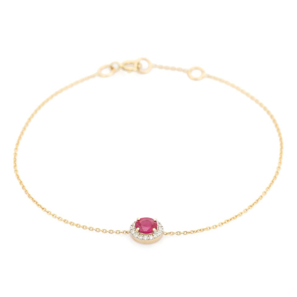 Bracelet minimaliste en or jaune 14 carats avec halo de pierres uniques en rubis véritable et diamant, pierre de naissance de juillet, cadeau d'anniversaire, bijoux à prix avantageux