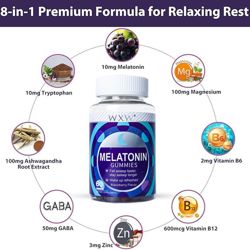 Bon prix Bonbons gélifiés à la mélatonine Dormir mieux Vitamines Gummy S'endormir plus rapidement Suppléments de bonbons