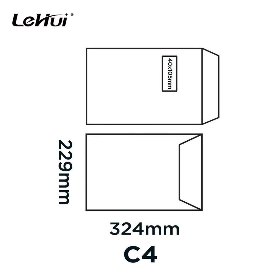 Enveloppes de portefeuille à fenêtre large, 229 pièces, bon prix, taille C4, 324x120mm, 250G