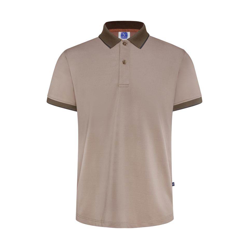 Product Name:Polo Shirt with Contrast Stripes on Knitted Collar & Cuffs