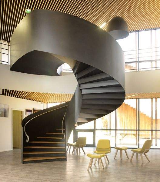 Escalier en colimaçon incurvé en acier à double poutre, personnalisé, pour intérieur, à prix avantageux