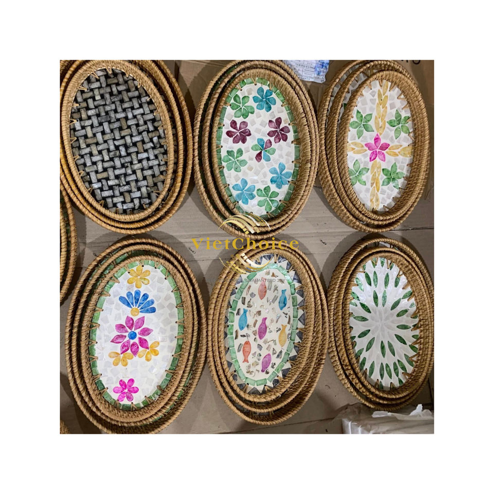 Bon Prix Plusieurs Plateau En Rotin Mosaïque Artisanat Plateau De Service Prix De Gros OEM ODM Vietnam Vietchoice Plats Assiettes