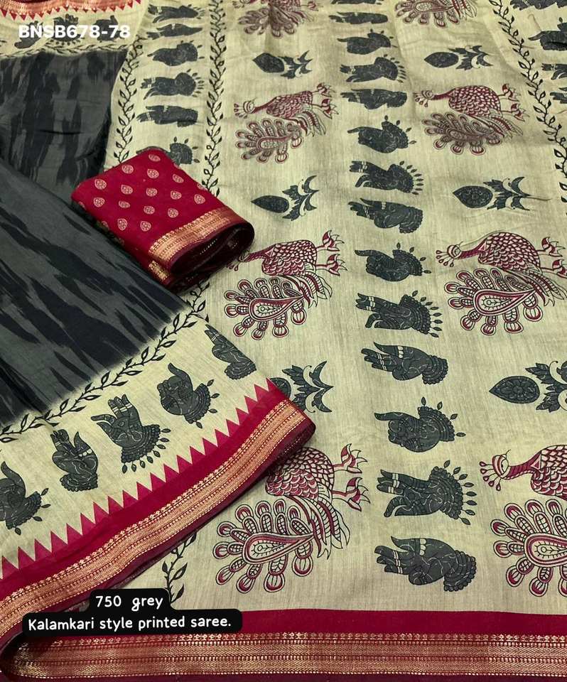 Sari en coton imprimé Kalamkari de qualité supérieure à prix avantageux, idéal pour les occasions spéciales, fabriqué à Surat.