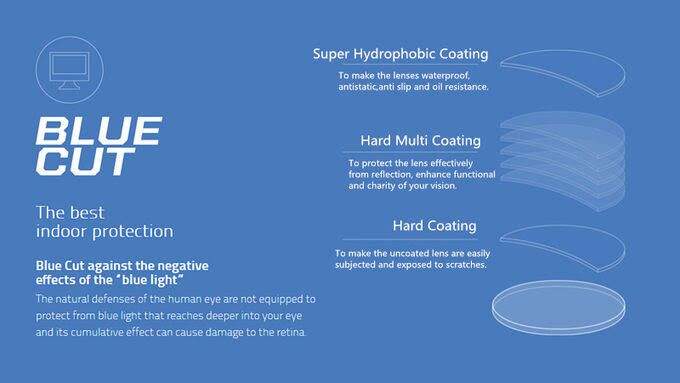 Bonne qualité 1.56 bloc lentille de lumière bleue revêtement SHMC lentilles coupées bleues