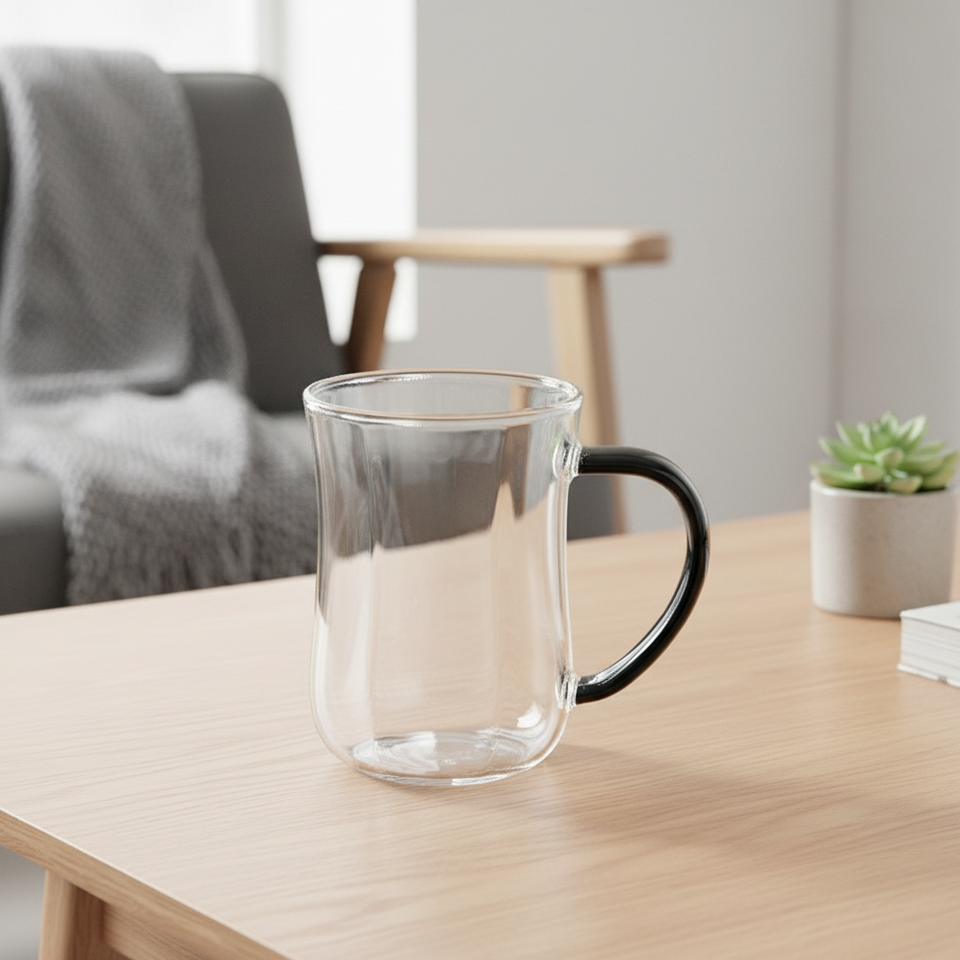 Gobelet en verre borosilicate de qualité supérieure 3306326-0.28, style Europe du Nord, avec poignée en plastique, résistant à la chaleur, unisexe, pour boissons chaudes/froides