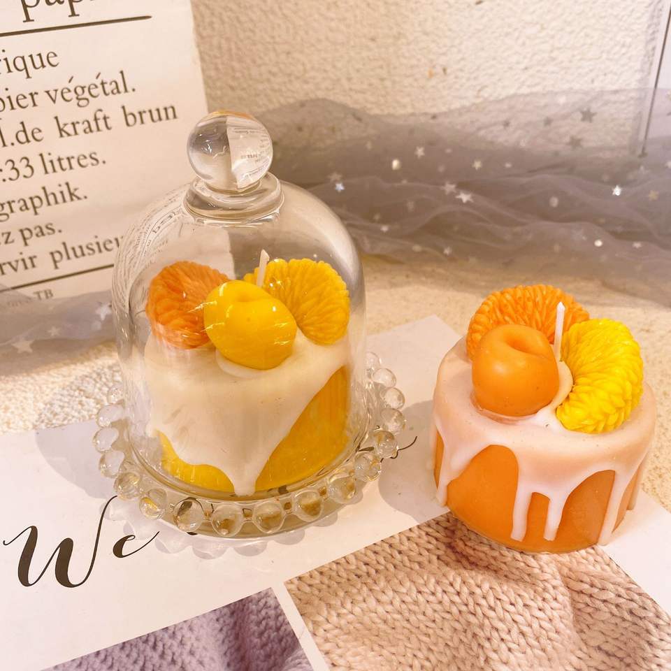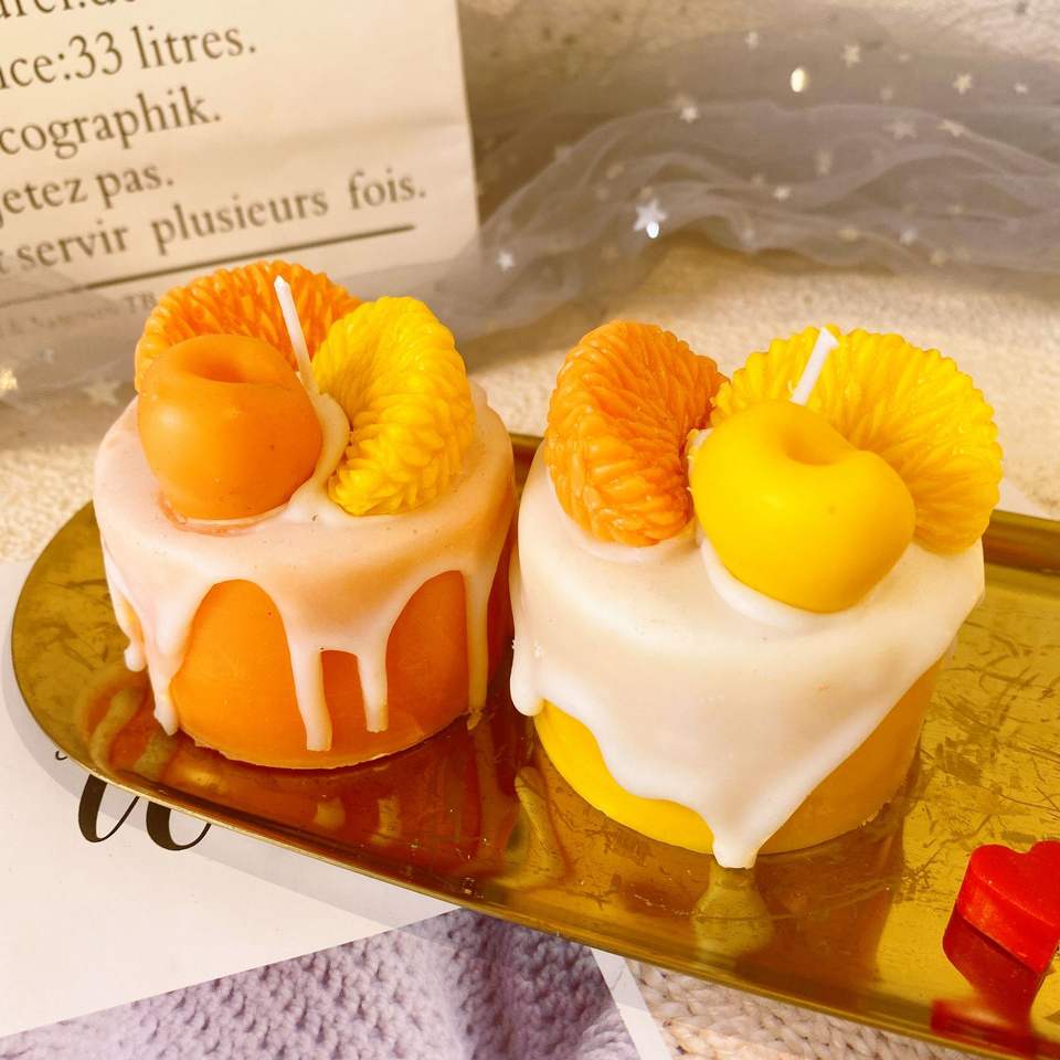 Cadeau de bougie parfumée d'aromathérapie en forme de gâteau orange fait à la main de bonne qualité