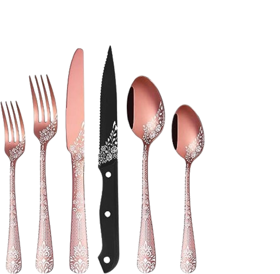 Couverts en acier inoxydable durables en vrac de bonne qualité finition plaquée or avec poignée blanche ensemble de couverts pour la maison hôtel