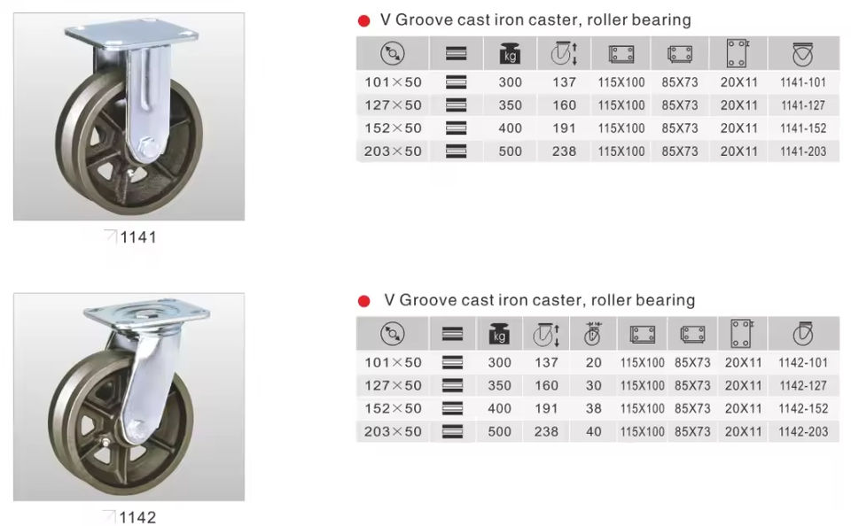 Good Quality Industrial Cast Iron Caster Wheels with V Groove Design Durable No Brake Included-Direct Manufacturer