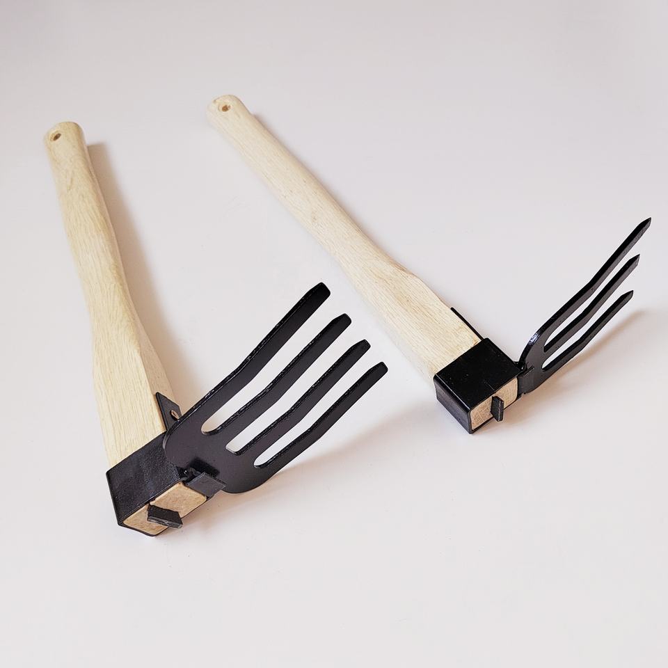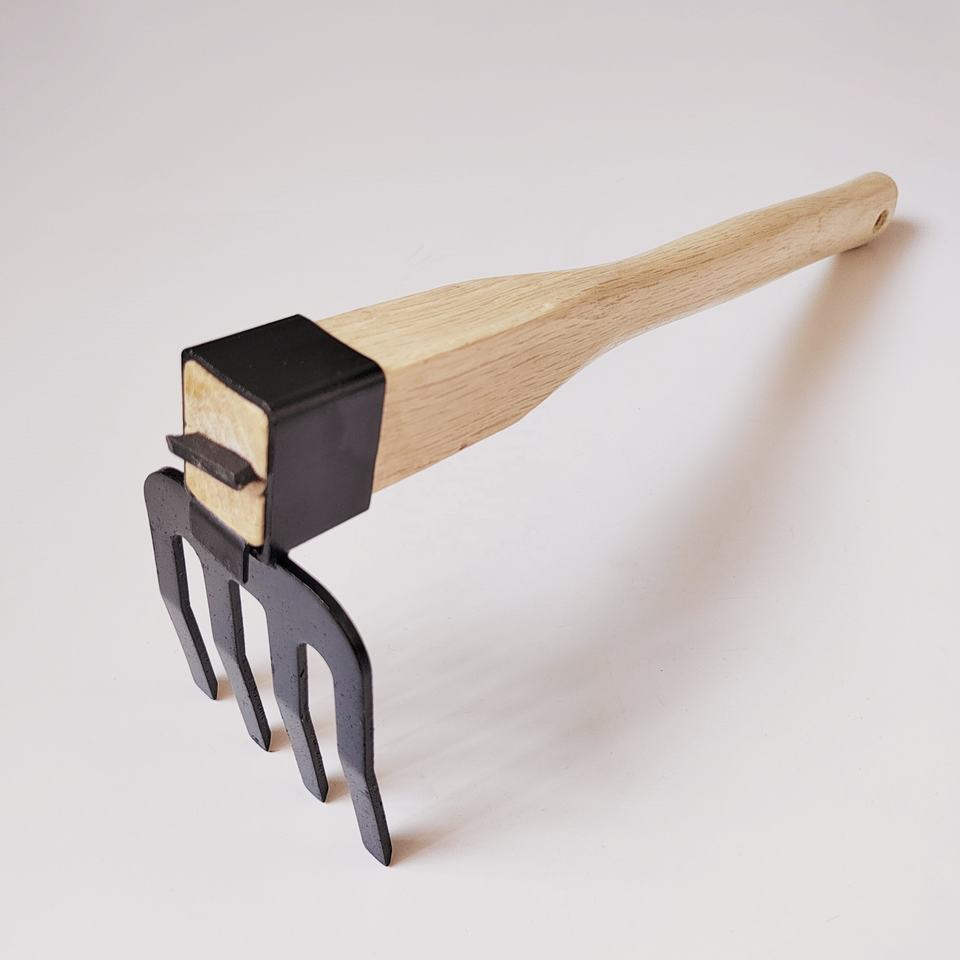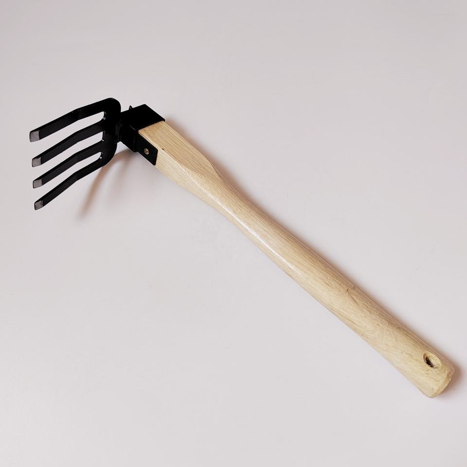 Outil de creusement à une main de bonne qualité et bon marché avec râteau à 4 dents pour le jardinage, le désherbage et la plantation d'arbres.