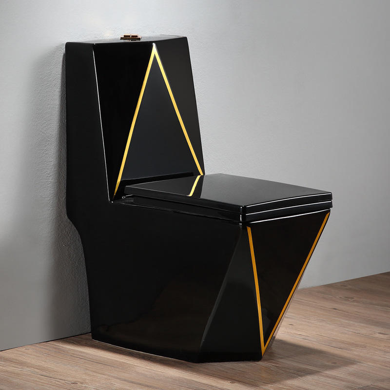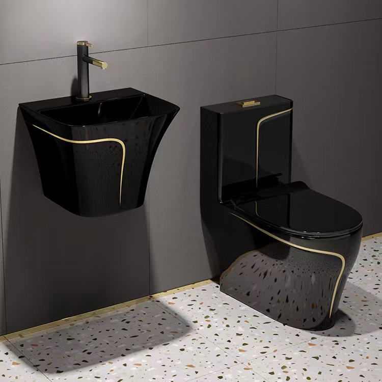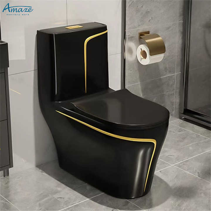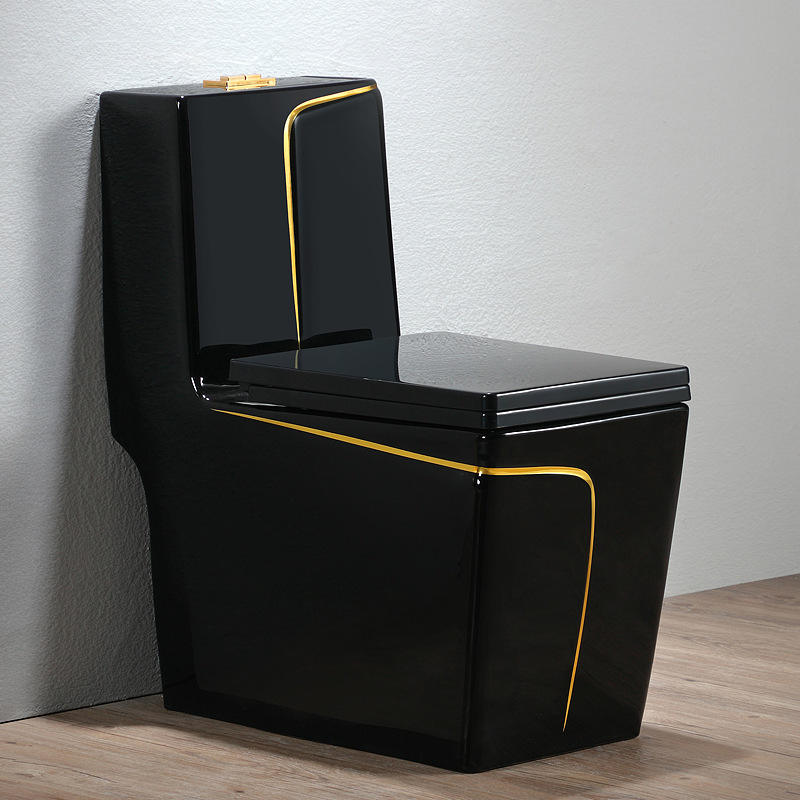 Good Quality Custom Luxury Design Floor Mounted Wc Black Gold Line Colored Water Closet Bathroom Ceramic One Piece Toilet Bowl