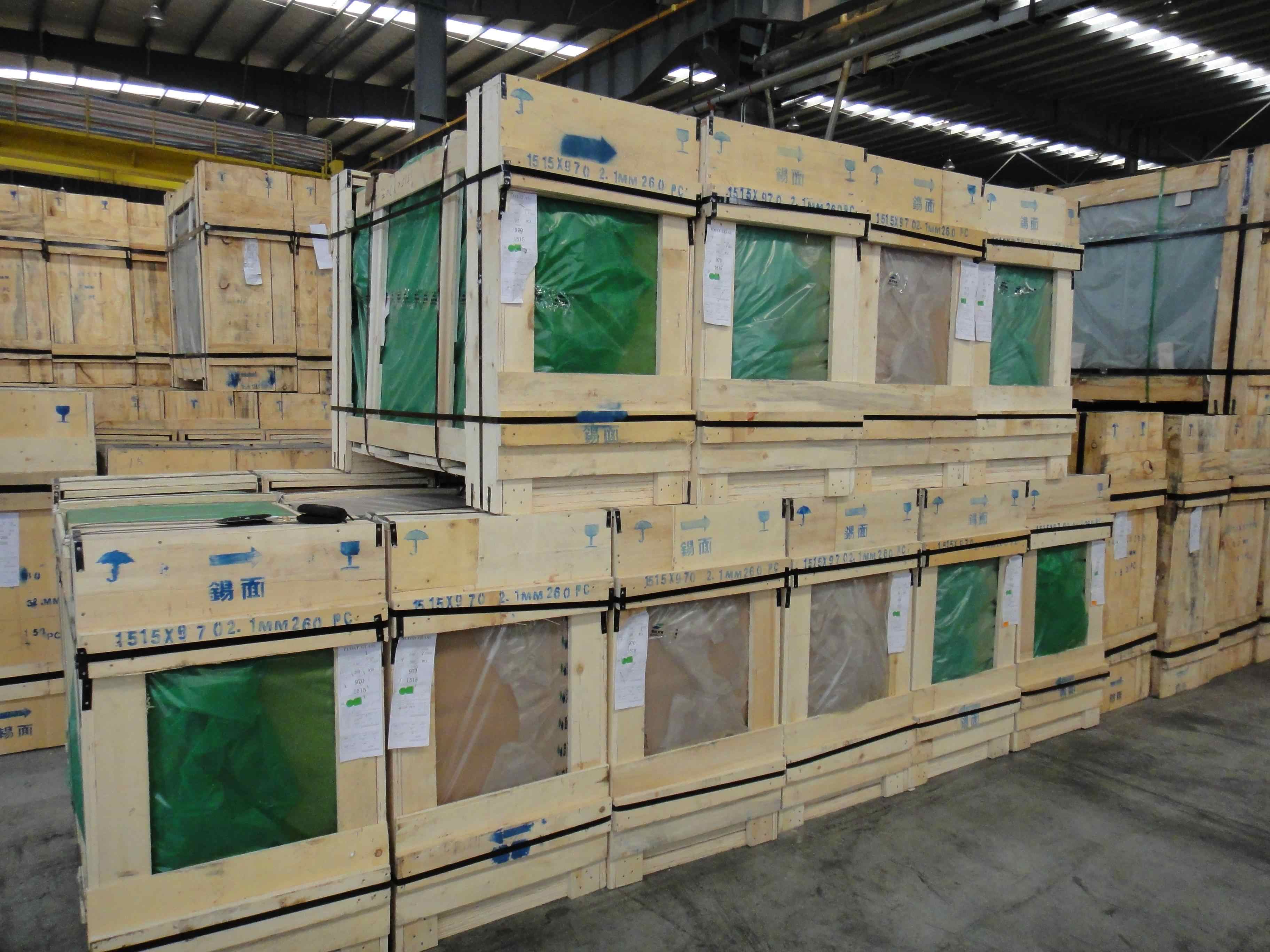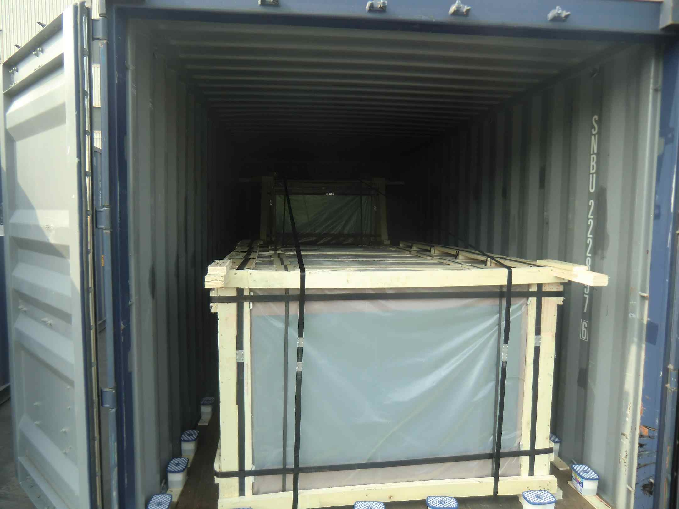 Emballage de caisse en bois massif avec du papier entre chaque deux couches de verre