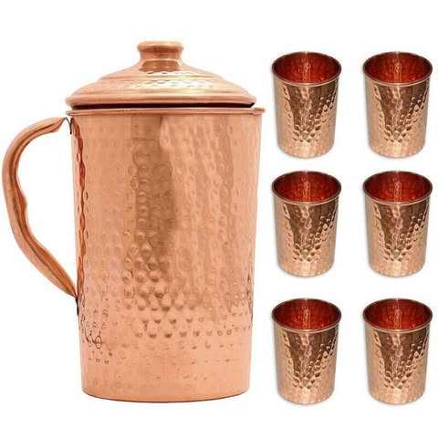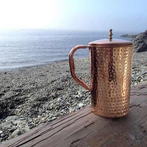 Carafe à eau en cuivre pur de qualité supérieure, personnalisée, avec verre, pour la décoration de table de mariage, en métal, bénéfique pour la santé