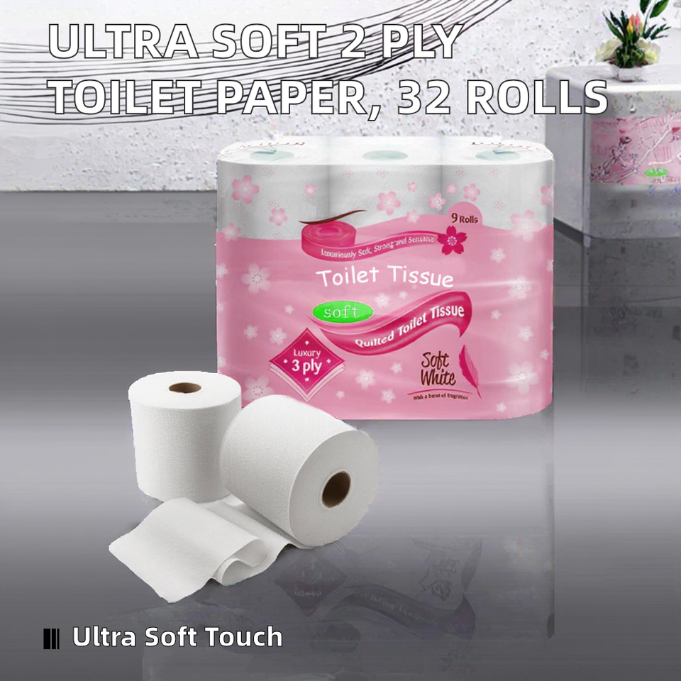 Papier toilette jetable Npp de bonne qualité, ultra doux, 2 plis, en pâte de bois vierge, rouleau standard, 32 rouleaux, modèle OEM