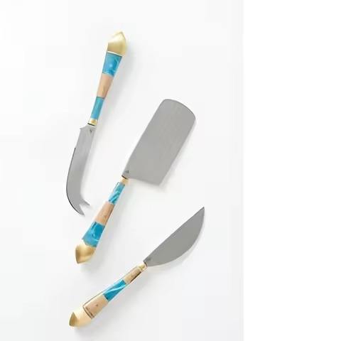 Good Quality Handcrafted 3pc Stainless Steel Slicer Cheese Knives Set with Mother Of pearl Handle for Serving Cheese Breakfast