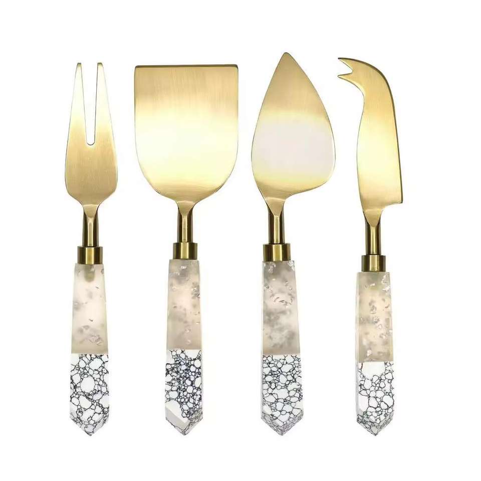 Ensemble de couteaux à fromage en acier inoxydable de bonne qualité fabriqués à la main avec manche en marbre et en bois pour servir du fromage au petit-déjeuner