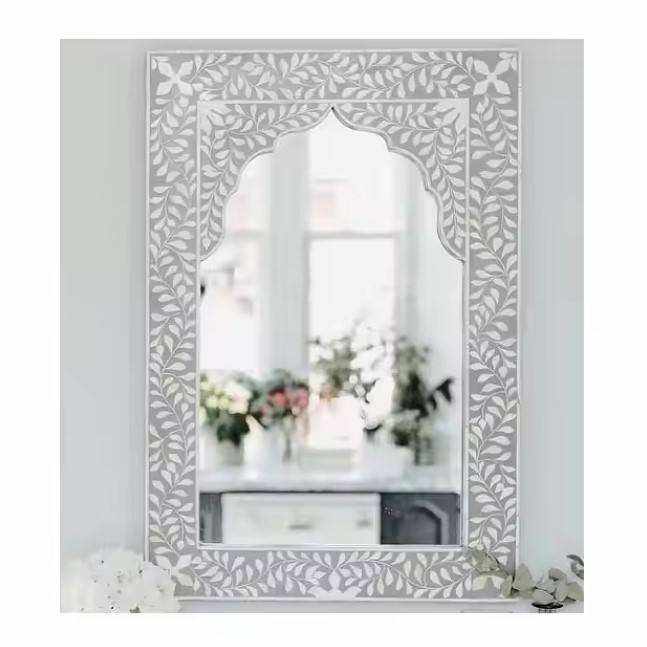 Cadre de miroir fait main de bonne qualité avec incrustation d'os, finition personnalisée, taille sur mesure, design classique, maison et jardin