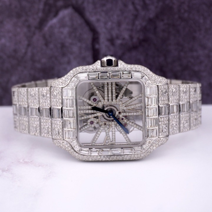 Montre en moissanite glacée VVS qui passe le testeur de diamant.