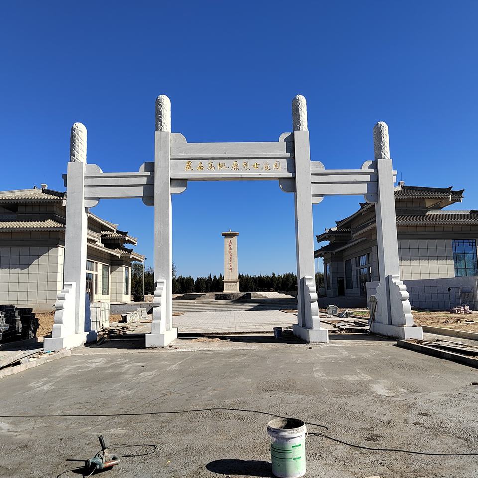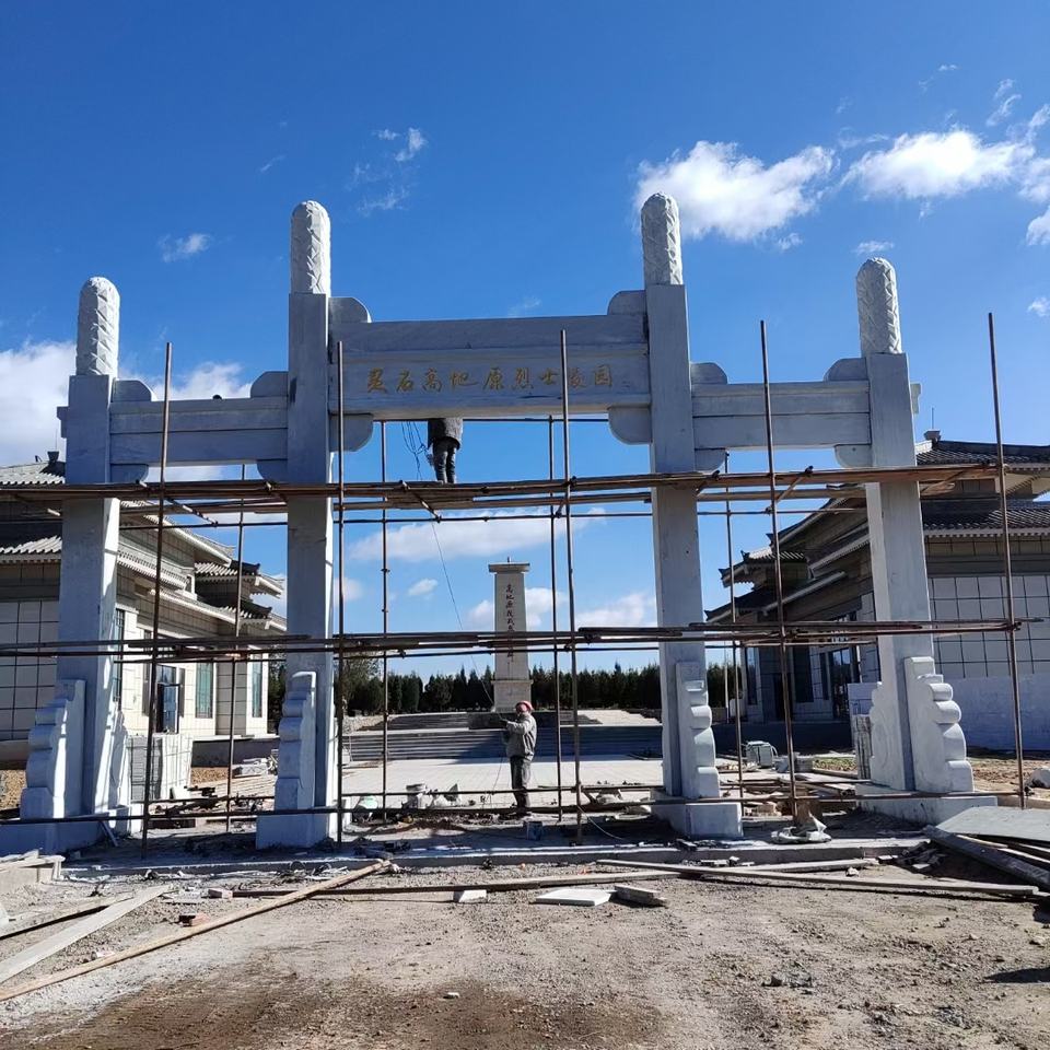 Arche sculptée en pierre de grande qualité, entrée de village, arche à trois portes en granit, Paifang en pierre pour temple, portail de montagne