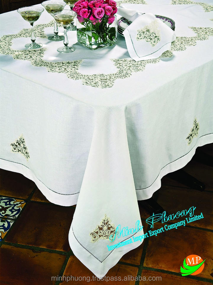 Nappe/napperon en lin/coton de bonne qualité avec broderie-No 2