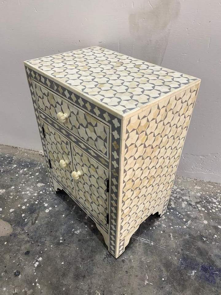 Coffre à tiroirs moderne et écologique de bonne qualité avec incrustation d'os de chameau, artisanat à la mode pour la maison et l'école d'Inde