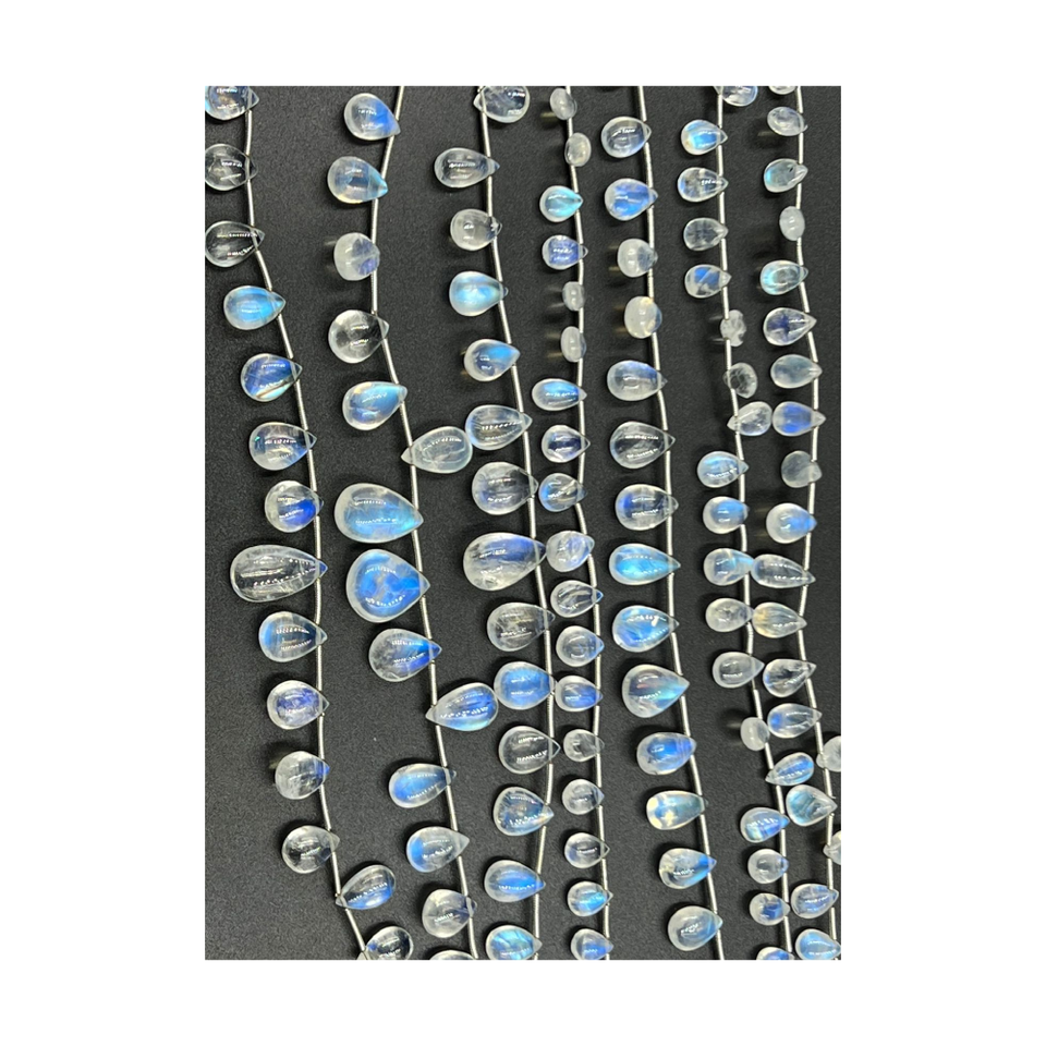 Haute qualité naturel bleu feu arc-en-ciel pierre de lune Briolette poire gouttes 4x6mm à 10x17mm tailles 8 pouces brin pour la fabrication de bijoux