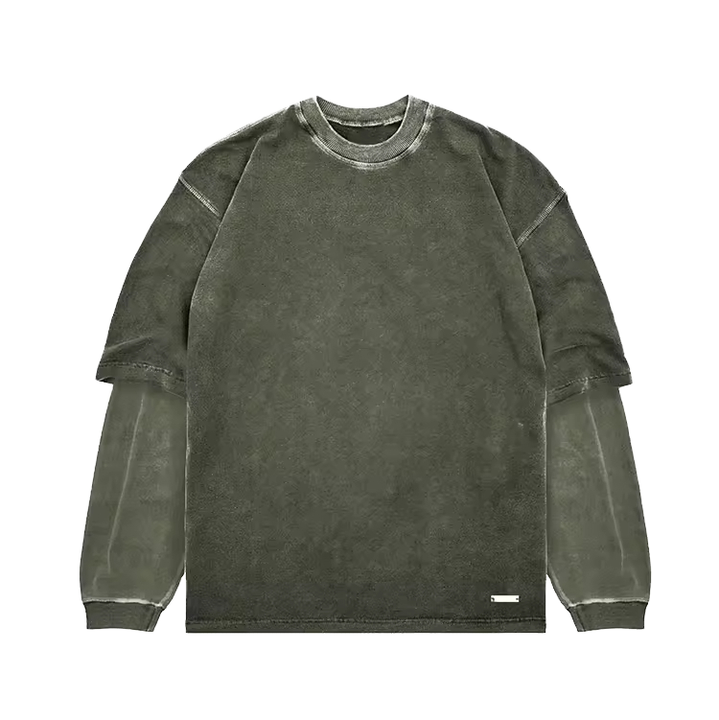 Bonne qualité nouveauté OEM Logo imprimé Vintage coton lavé à l'acide Double couche T-shirt à manches longues pour hommes livraison DDP