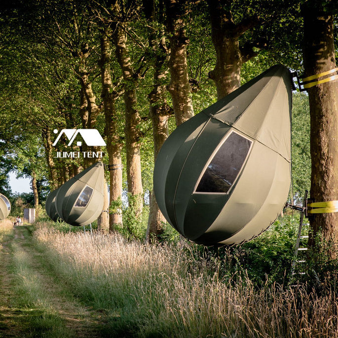 Tente de camping de haute qualité en forme de goutte d'eau, en toile verte pour l'extérieur, suspendue à un arbre pour le glamping