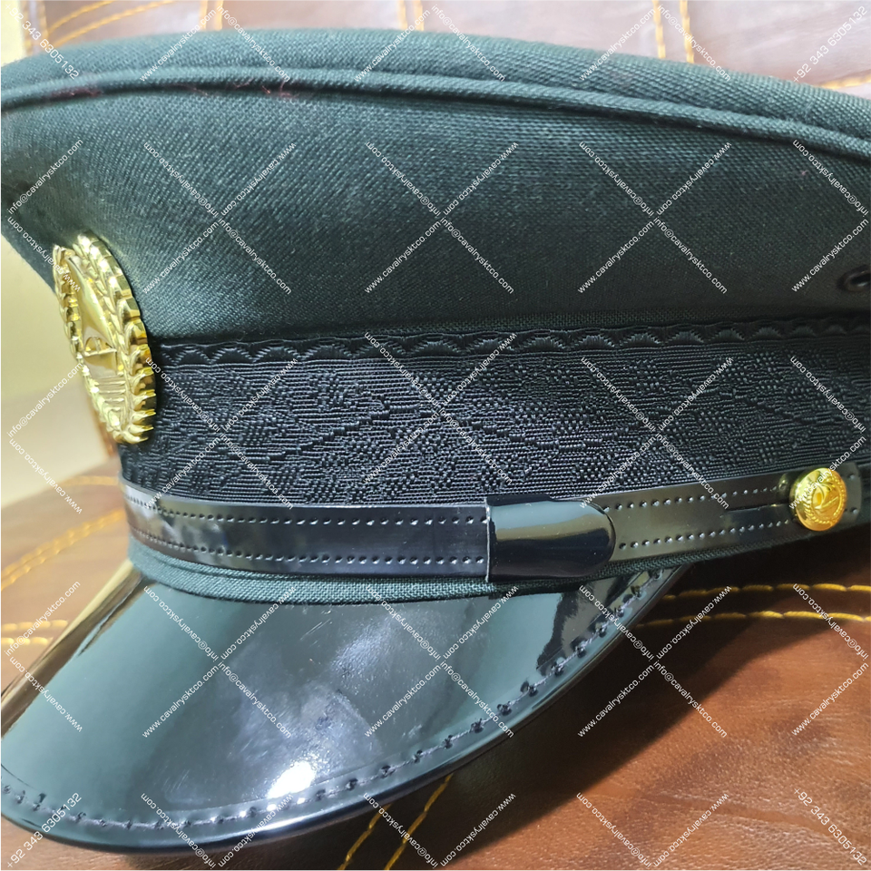 Casquette de pointe de bonne qualité avec métal, insigne de broderie sangles en cuir casquettes de pointe d'officier personnalisées par CAVALRY SKT COMPANY