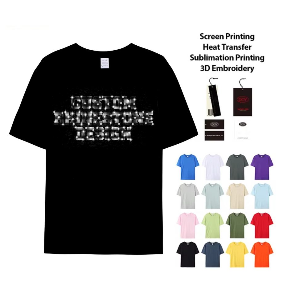 T-shirt personnalisé imprimé de bonne qualité avec strass pour homme, T-shirt graphique en coton uni orné de pierres brillantes