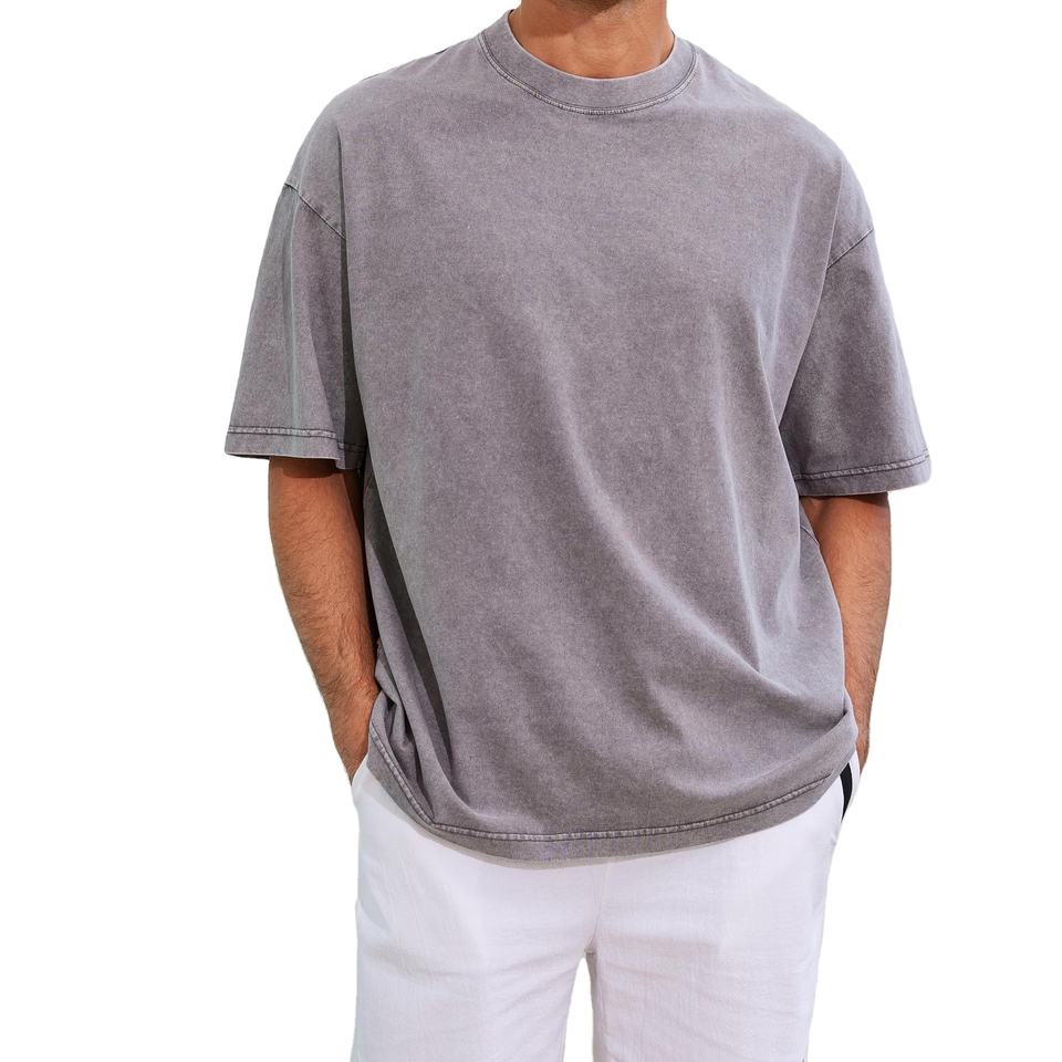 Good Quality Pure Cotton Sun Faded Drop Shoulder Vintage Acid Wash T-shirt Stock Oversized Heavyweight Custom Logo Printed