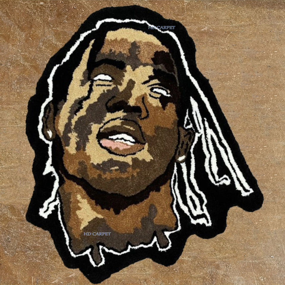 Tapis rond de bonne qualité « Je souhaite que tu sois ici » avec visage souriant, fabriqué à la main, tapis Travis Scott Astroworld