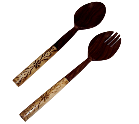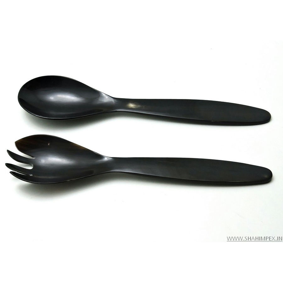 Service à salade de bonne qualité avec poignées en acier poli, vaisselle en corne, service à salade en acier inoxydable