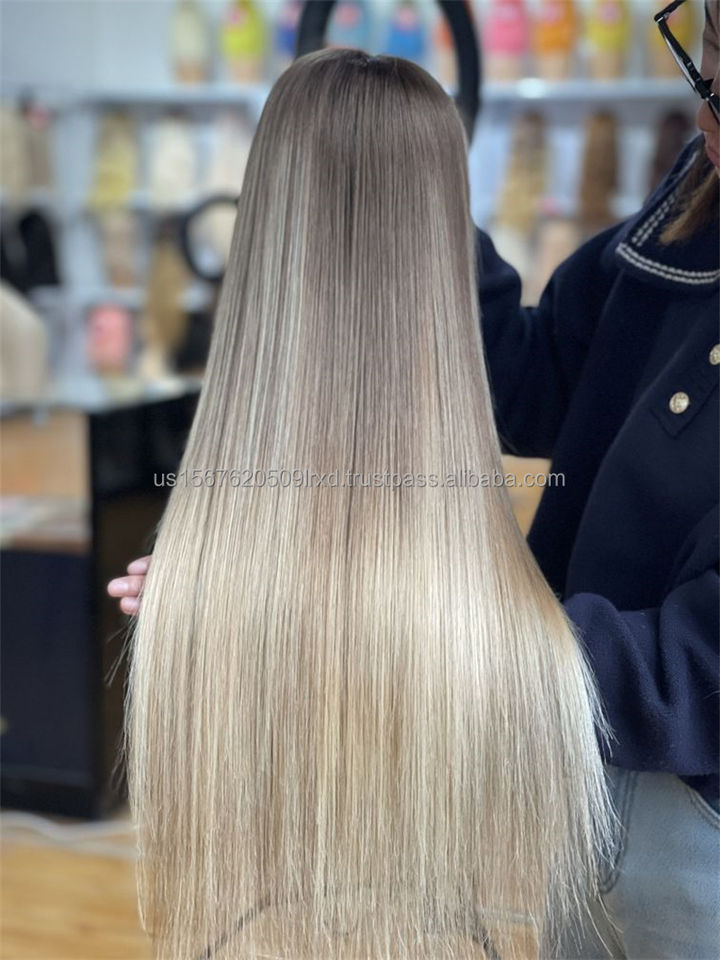 Bonne qualité soyeux droite 20 pouces blond cendré 5x5 fermeture perruques de cheveux humains vrais cheveux dentelle transparente