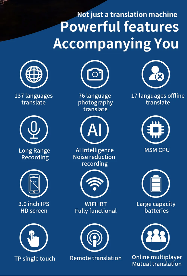 Dispositif de traduction de bonne qualité traducteur vocal AI Instant Portable hors ligne en ligne pour la négociation d'affaires de voyage à l'étranger T9