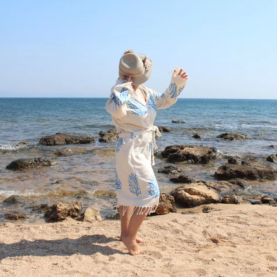 Good Quality Turkish Cotton Hooded Bathrobe Quick Drying Long Sleeve Soft Bathrobe Women Men Kids Size Option Home Beach Spa
