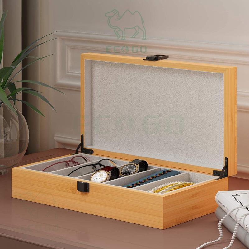 Boîte de rangement pour montres de bonne qualité avec 5 compartiments Plateau de rangement pour bijoux Boîte à bijoux écologique