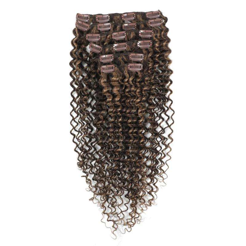 Bonne qualité couleur bouclée à l'eau 6 ensemble de 7 extensions à clip cheveux bouclés à l'eau brute humaine indienne vierge non traitée