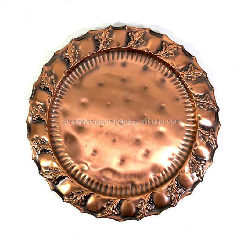 Plateau de service de forme ronde en relief décoratif de mariage de bonne qualité ou plateau de service pour les hôtels et la décoration de table à manger