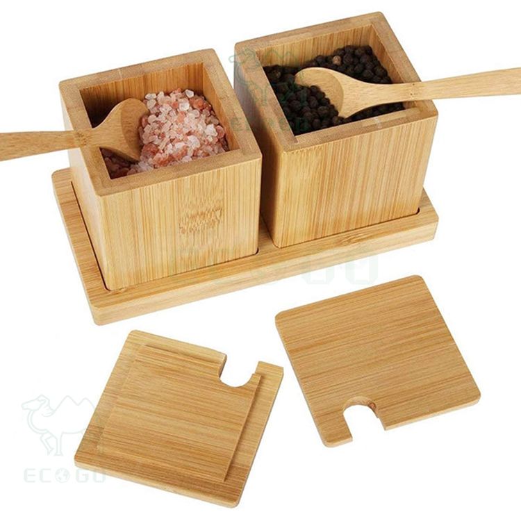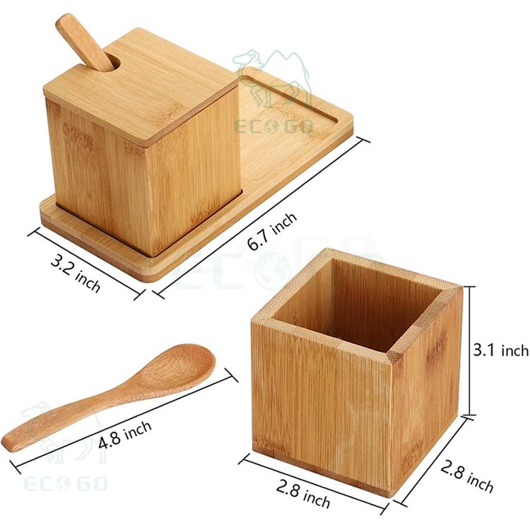 Boîte à sel en bois de bonne qualité Boîte à épices en bambou durable avec cuillère Boîte de rangement d'épices