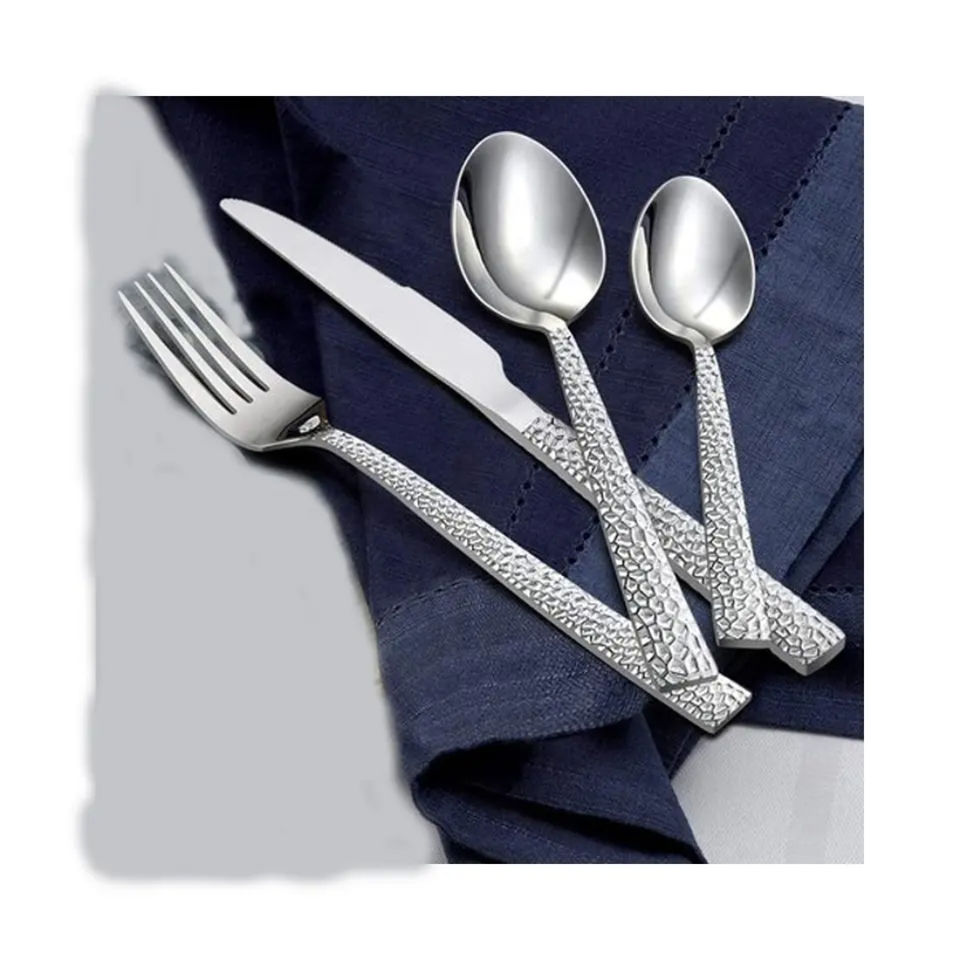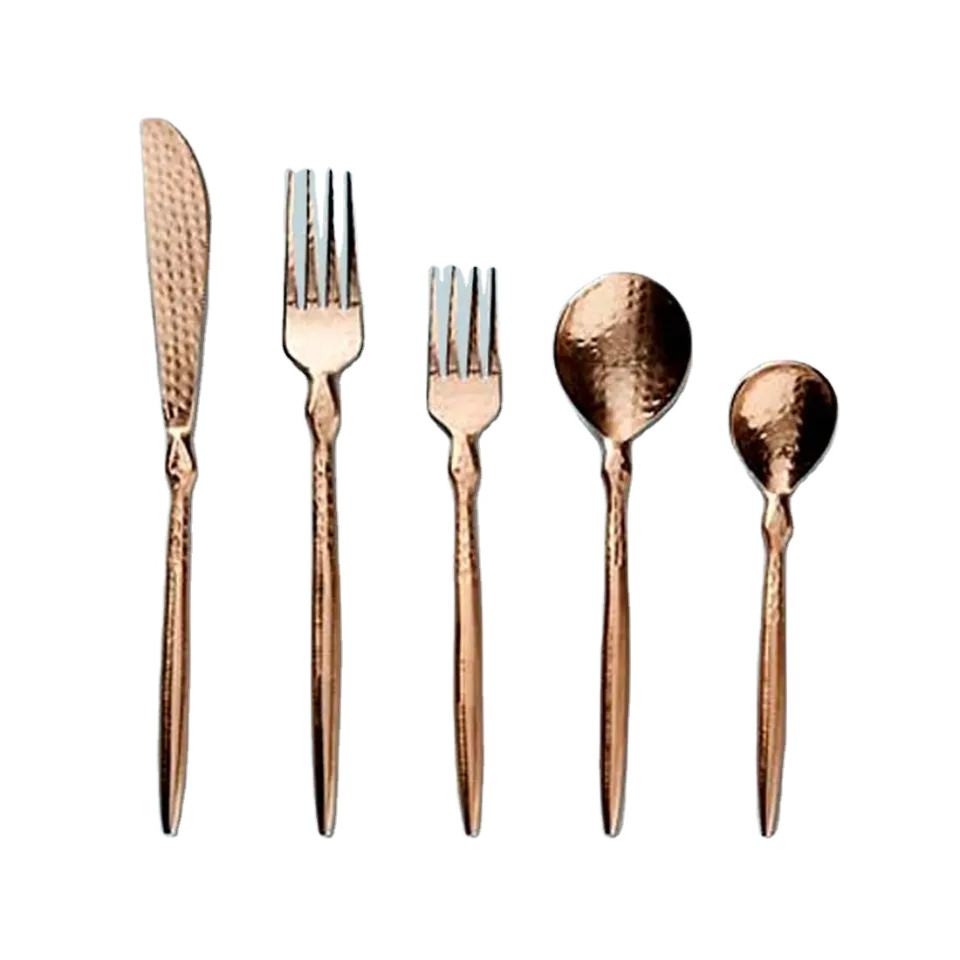 Good Rose Gold Hammered Cutlery Set Stainless Steel Kitchenware Teaspoon Fork Wedding Spoon Set From India